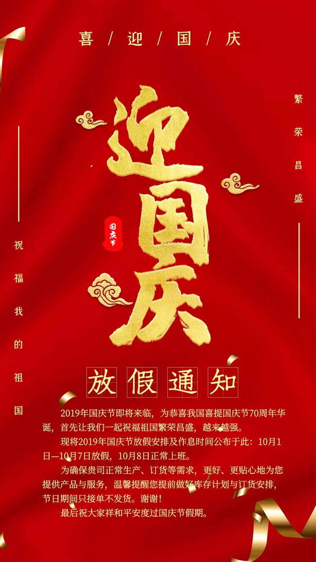 安徽迅博2019年國慶節(jié)放假通知